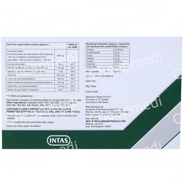 Chasteberry 200 mg+Cholecalciferol 400 IU+Elemental Zinc 7.5 mg+Folic Acid 400 mcg+Green Tea Extract