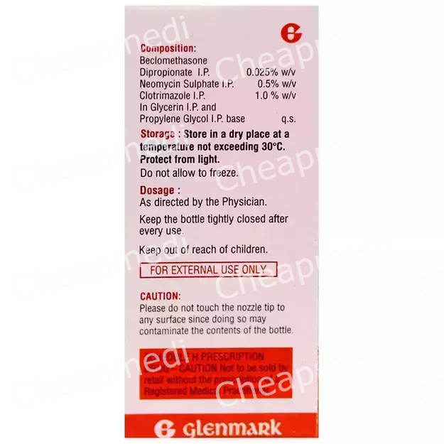 Beclometasone (0.025% w/v) + Neomycin (0.5% w/v) + Clotrimazole (1% w/v)