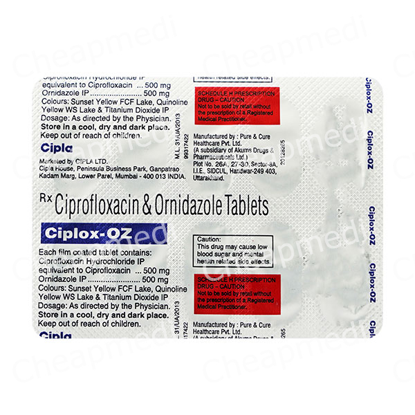 Ciprofloxacin (500mg) + Ornidazole (500mg)
