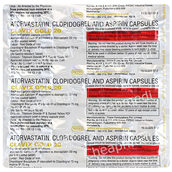 Aspirin (75mg) + Atorvastatin (20mg) + Clopidogrel (75mg)