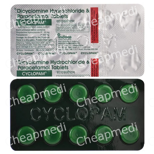 Dicyclomine 20 mg+Paracetamol 500 mg