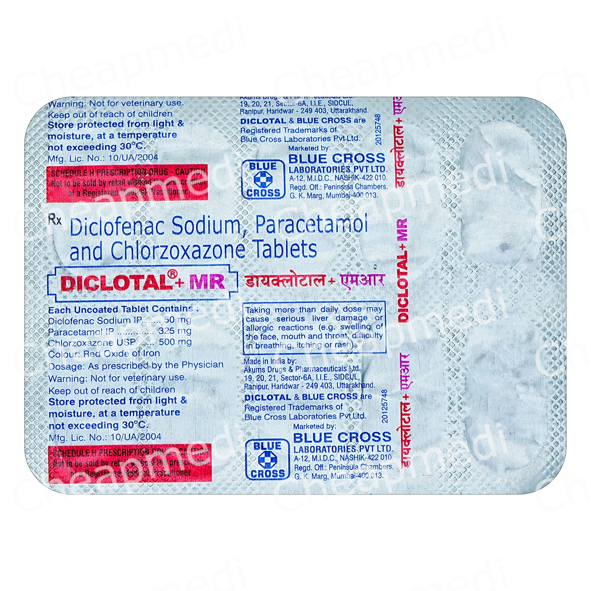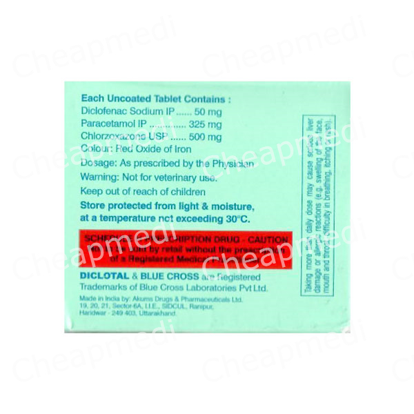 Chlorzoxazone (500mg) + Diclofenac (50mg) + Paracetamol (325mg)