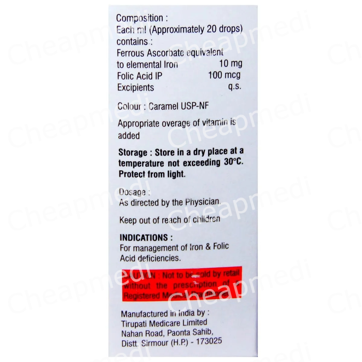 Elemental Iron 10 mg+Folic Acid 100 mcg