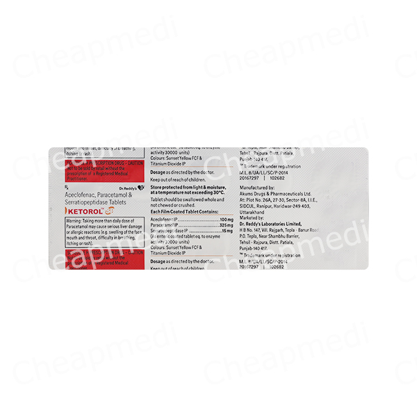 Aceclofenac (100mg) + Paracetamol (325mg) + Serratiopeptidase (15mg)