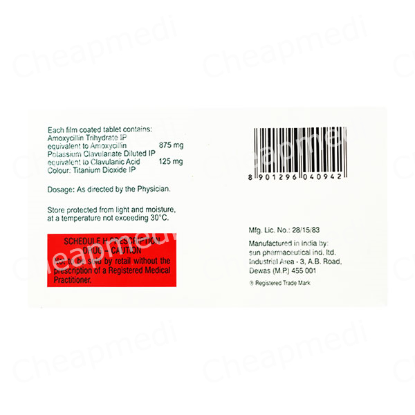 Amoxycillin 875 mg+Clavulanic Acid 125 mg