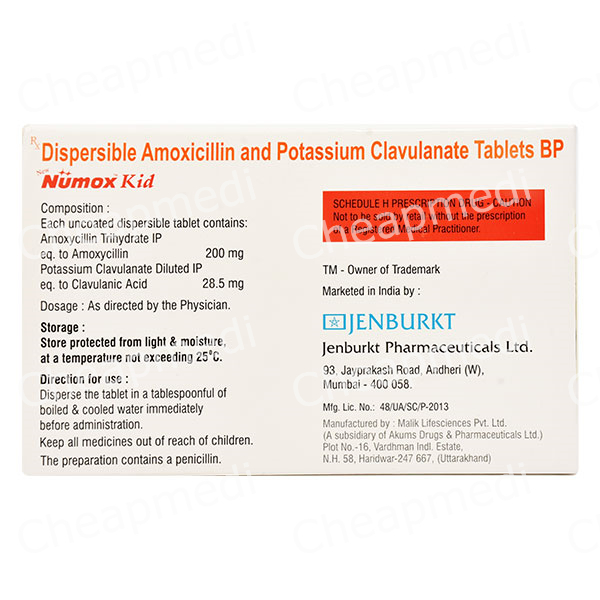Amoxycillin 200 mg+Clavulanic Acid 28.5 mg