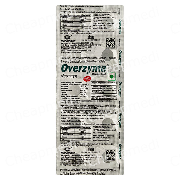 OVERZYME Sugar Free Chewable Tablet