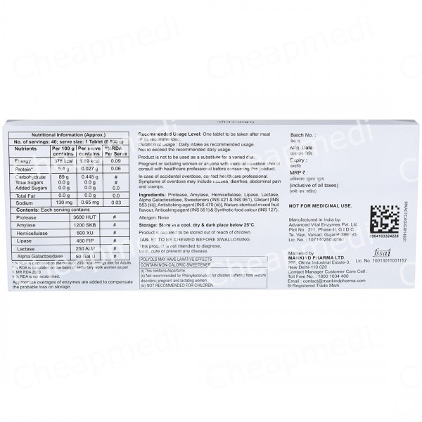 Lactase(250.0 Alu) + Amylase(1200.0 Skb) + Protease(3600.0 Hut) + Lipase(450.0 Fip)