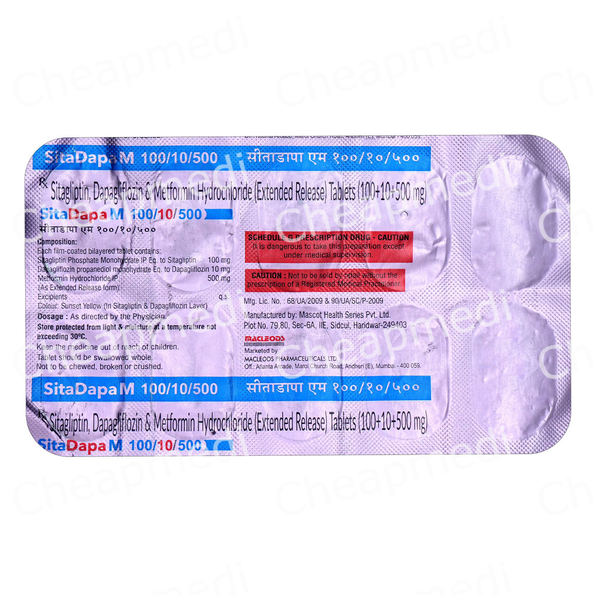 Dapagliflozin (10mg) + Metformin (500mg) + Sitagliptin (100mg)