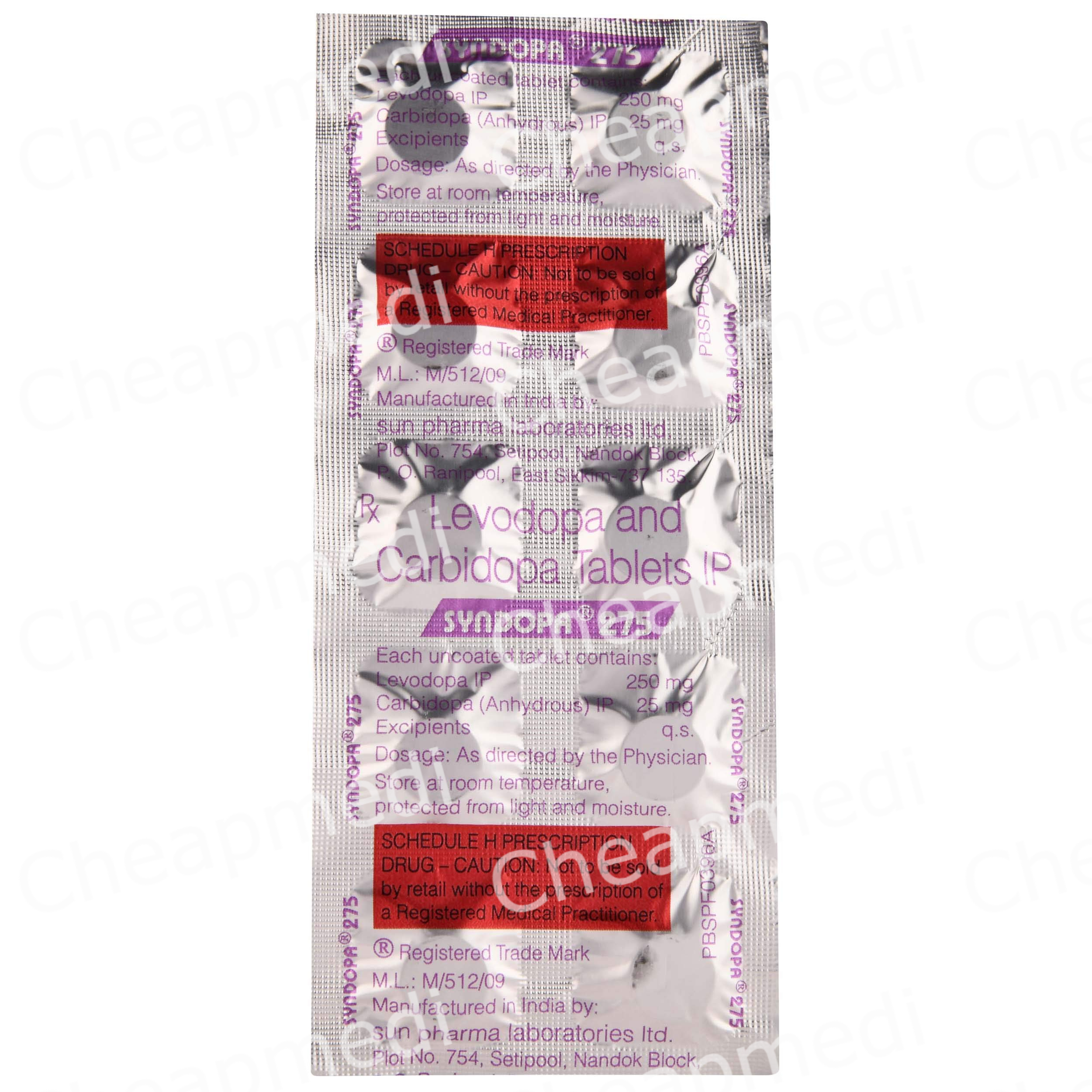 Levodopa (250mg) + Carbidopa (25mg)