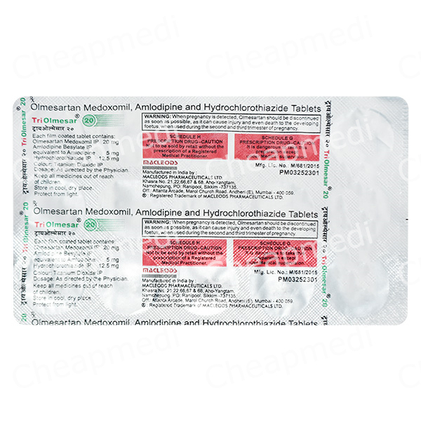 Olmesartan Medoxomil (20mg) + Amlodipine (5mg) + Hydrochlorothiazide (12.5mg)