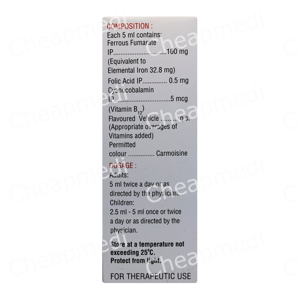 CYANOCOBALAMIN-5MCG + FERROUS FUMARATE-100MG + FOLIC ACID-0.5MG