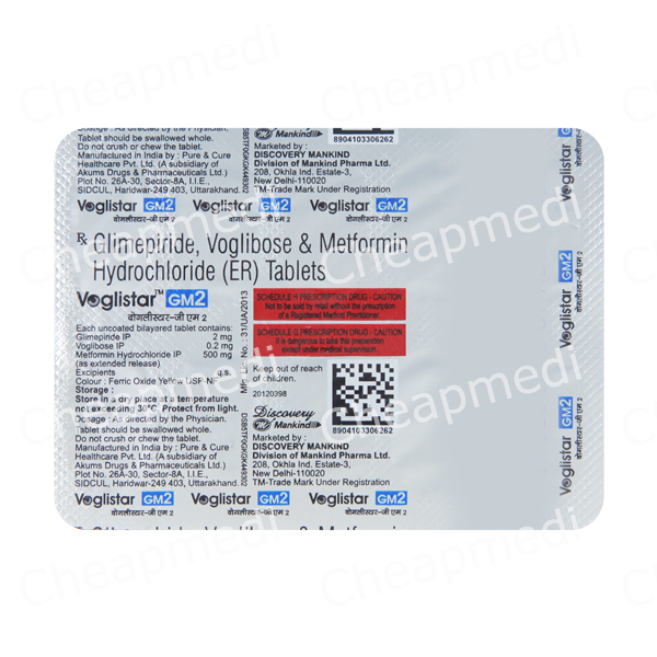 Glimepiride (2mg) + Metformin (500mg) + Voglibose (0.2mg)